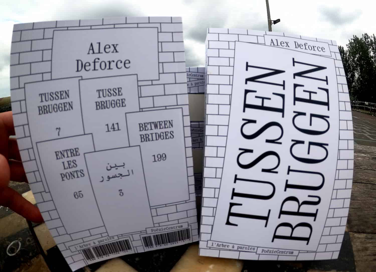 Het gedicht is vertaald naar het Frans, Engels en Brusseleir, en door Les Editions Deforce in eigen beheer uitgebracht als gelimiteerde audiocassette en stickerpack. In september 2024 komt Tussenbruggen uit als bundel bij Poëziecentrum/l'Arbre à Paroles, met een extra vertaling naar het Arabisch.